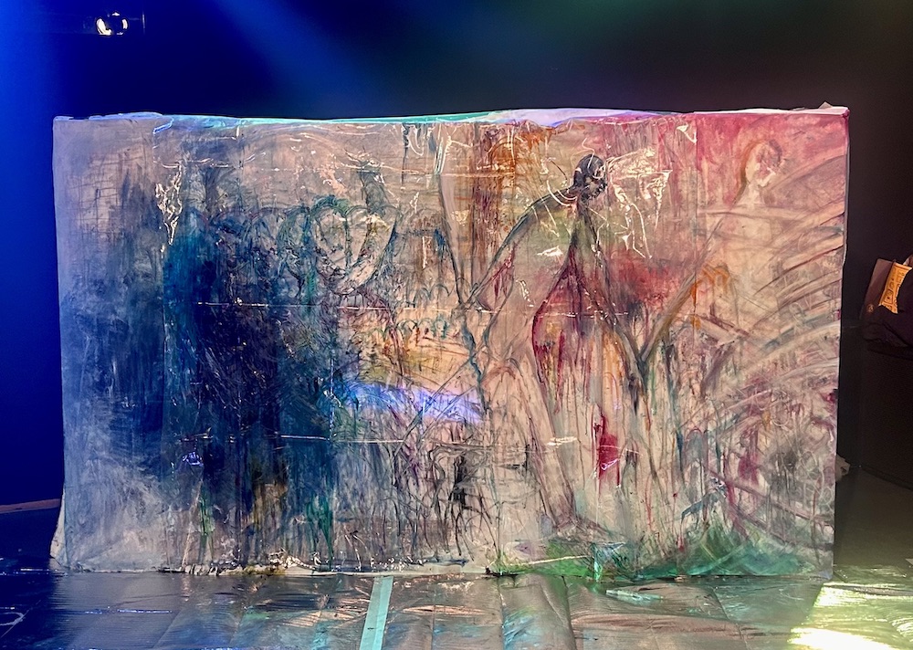 絵画作品は絵画としてだけでなく、構造物としても存在し、他の絵画やインスタレイション内の木材や言葉、映像や設置物などと共鳴し、関係性が重なっていきます。