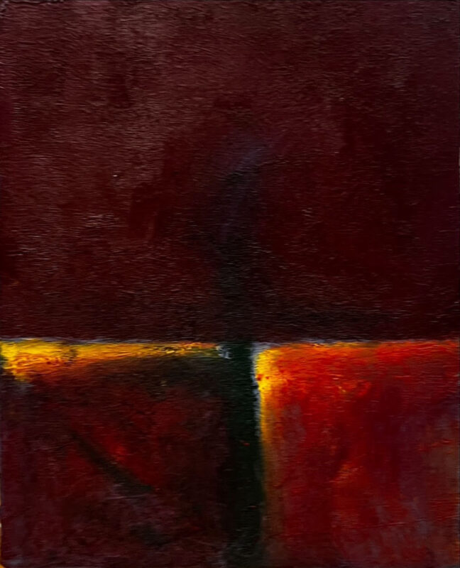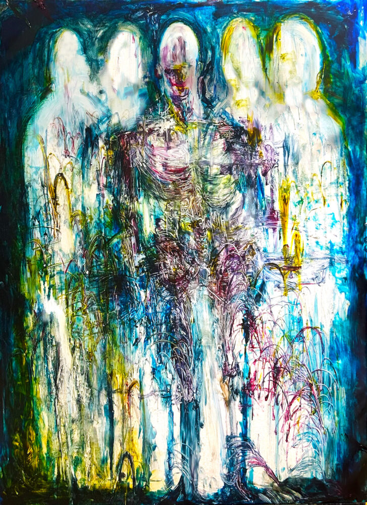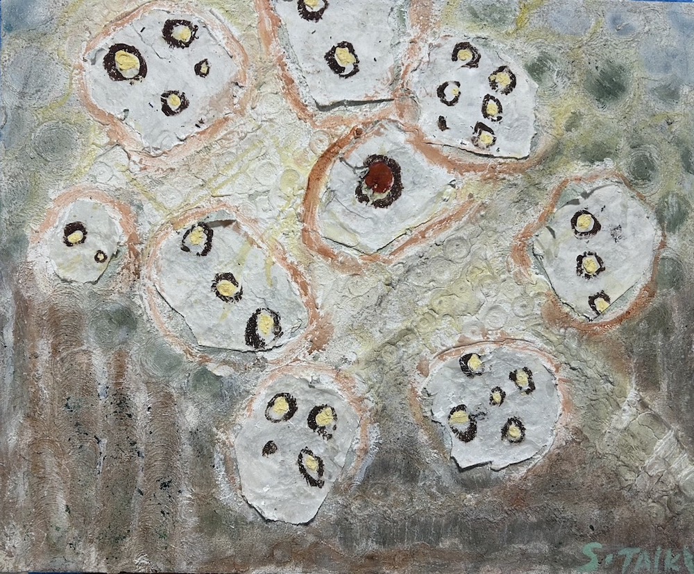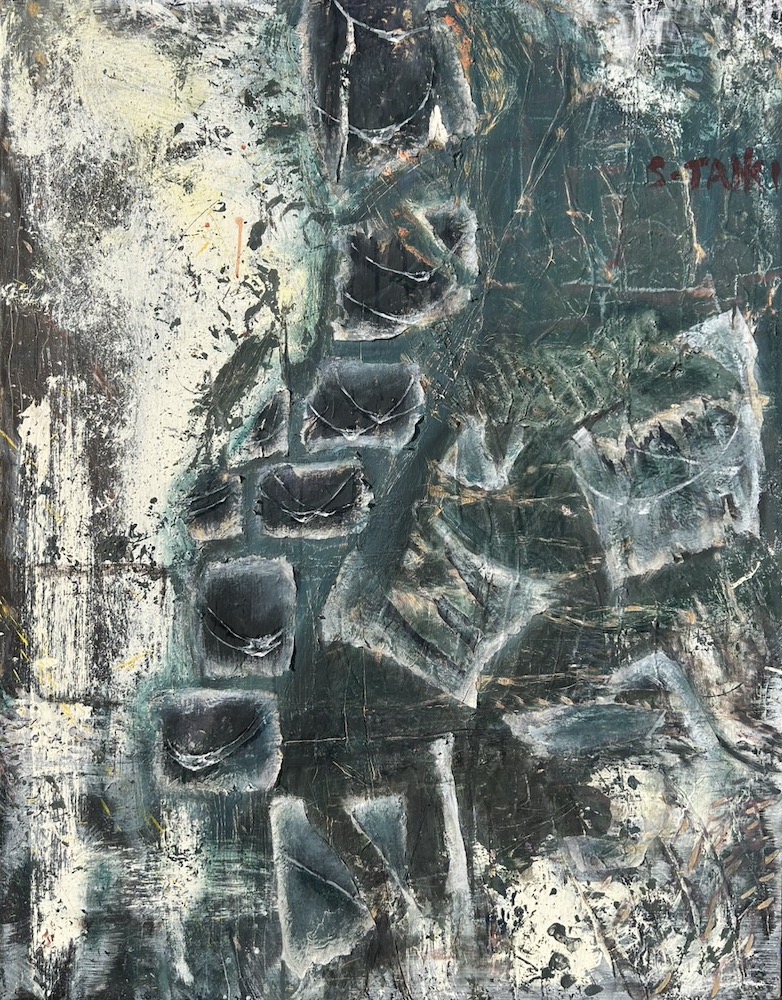 厚く荒々しいマチエールの中に、運命のサイコロが投げられ、経験が刻まれた痕跡。