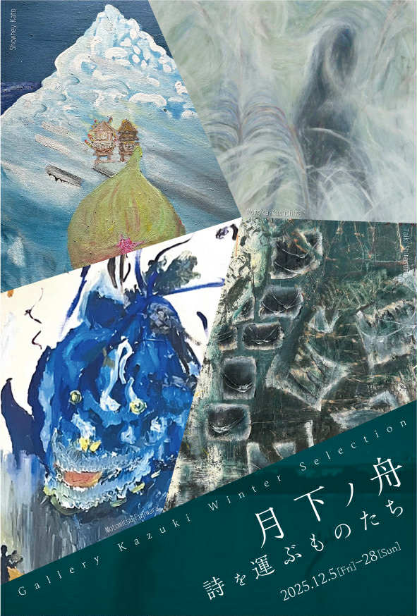 芸大生から独自の表現を生きる糧として追求する画家、映像やコミュニケーションアートを研究するもの、言葉を絵画やインスタレーションに変換する作家、様々な異なる背景を持つ若者たちが詩を通してギャラリーという一艘の舟に乗り込み作品を寄せた展覧会です。